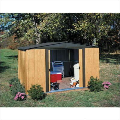 WL86 Woodlake Shed 8' x 6' Get the realistic look of wood-grain, maintenance free. Available in three sizes, the Woodlake offers easy-to-assemble storage solutions for every backyard storage need. Features: -Woodgrain finish with coffee roof and trim -Easy to assemble pre-cut and pre-drilled parts -Attractive, horizontal steel panels that ''drop in place'' for faster assembly -Tall high-gambrel roof means extra headroom and easy access -Mid-wall bracing for greater all-around strength -Deep track door glides for smooth sliding dependability Dimensions: -5.7'H x 8'W x 6'D Floor Frame Kit for 8' x 6' and 10' x 6' Buildings -Please specify size -Assembles in minutes -Keeps stored items off the ground -Strong hot-dipped galvanized steel -Perfect for plywood floor finish -Finishing material not included Auger Anchor Kit -Easy to install -Auger Kit: Includes four 30'' heavy duty steel augers, 60' of aircraft strength cable, and 4 cable clamps -Force of 1500 lbs. required to remove anchors from ground Concrete Anchor Kit -Easy to install -Concrete Kit: Includes four steel corner gussets and perimeter clips -Lag bolts building directly into concrete slab -1/4 inch masonry drill bit included Roof Strengthening Kit - 8' x 6' If you live in an area with a lot of snow accumulation, you may wish to reinforce your shed roof. This easy do-it-yourself kit is the perfect way to strengthen your shed! Features: -Increase roof strength by 50pct for heavy snow accumulation -Easy to install -Fits most new or existing Arrow buildings -Please specify size Corkscrew Ground Anchor Kit -Great for anchoring small and slope roof buildings -Includes 4 corkscrew type anchors, 4 corner gussets and 4 locking washers. -Fits steel buildings up to 10x13 ft. -Ground Anchors or Concrete Anchors are also recommended Shed Rack - For placement in sheds, garages, basements and any workshop -Get 15 1/2 extra square ft. of storage space -Each shelf holds up to 200 lbs. (even weight distribution) -Color: Bl