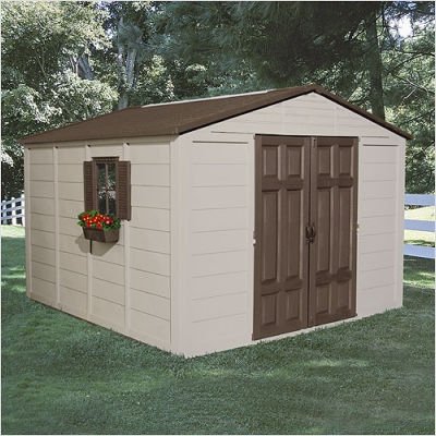 [***INCLUDED IN THIS SET: (1)10' X 10' Storage Building, (1)Corner Shelf, (1)Shed Storage Loft, (1)Bracket and Hooks] This attractive Storage Building is great for keeping the yard and your garage clutter free. Place unused items or store your lawn mower in this storage unit to create more space in your garage. Features: -Includes 10' x 10' Storage Building -May add hooks, corner shelf, or storage loft -Provides storage space for push mowers, yard equipment, bikes and furniture -Extra wide front opening 56''W x 69.5''H -Includes sturdy floor and 2 windows -Lockable doors -Add accessories to enhance design and storage -Long lasting resin construction Manufacturer Warranty Hoses and reels have a warranty limit of 2-5 years, all other products have no limited warranty upon the day of purchase, except for inclement weather conditions that may effect certain outdoor products. Suncast Corporation are willing to do replacement parts on items that may be fading, missing, or doesn't seem right with product.