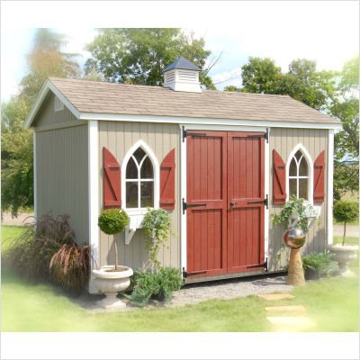 Workshop with Cupola, Gothic Windows and Shutters Aluminum Trim Color: Cream, Floor: 8 x 12, Vinyl Siding Color: White Reviews