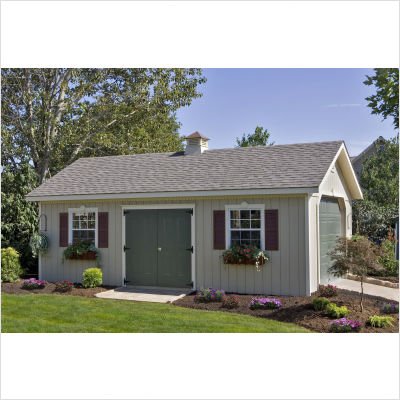 LK1424 Features: -Material: Wood, steel. -Used as a garage, guest house, garden building, outdoor storage, workshop or pool house. -Enhances your outdoor living experience whether it's children's play needs. -Elegant structure combines style with function. -Strong 7' walls with insect and rot resistant Smart Side panel siding. -Solid steel double house doors (6' x 6' opening) with lock set and key included. -2'' x 4'' Roof rafters (16'' on center) with 1/2 in OSB sheeting. -Steep A-frame style roof for maximum storage capacity and boxed in 10'' gable overhangs. -Flexible window and door placement allow for multiple designs. -4 Aluminum slider windows with screens, shutters and flower boxes included. -Comes unfinished ready to paint and shingle. -Dimensions: 135'' H x 288'' W x 168'' D.